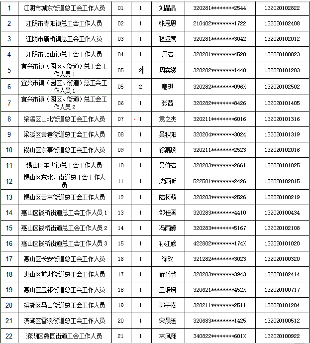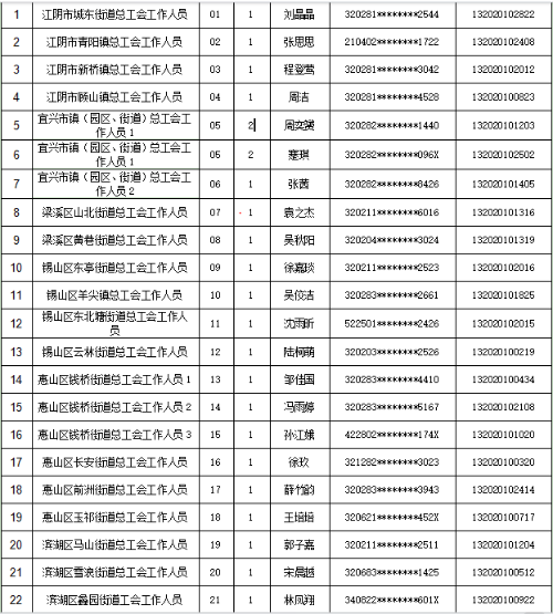 2025年度无锡市工会社会工作者招聘拟录用人员公示