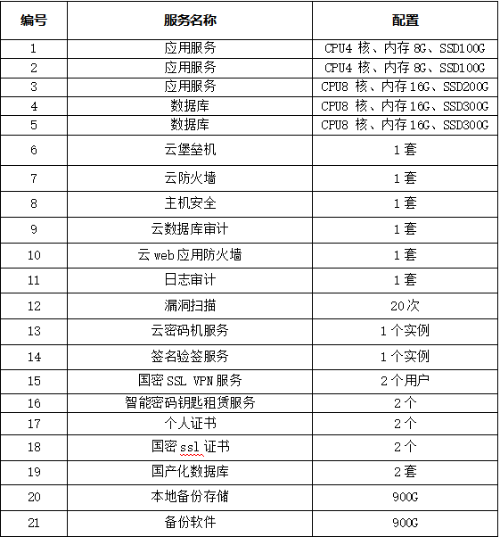 云主机、云web应用防火墙、云密码机、签名验签、国产化数据库等服务,合计219858.36元。